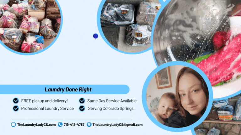 The Laundry Lady Promotion: Anyone placing orders totaling min 70lbs through March 31st will be entered to win FREE laundry service for 6 months! Winner announced April 1st. (Free service is bi-weekly up to 50lbs for each order.) Schedule a pickup now to receive $10 off your first order! 719-412-4767