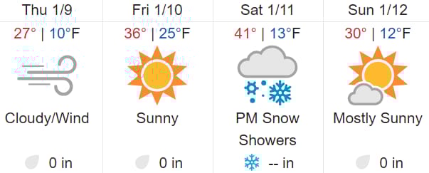🌦 COS Weather - Windy, cold and light snow (flurries in South COS up to 2" North COS)