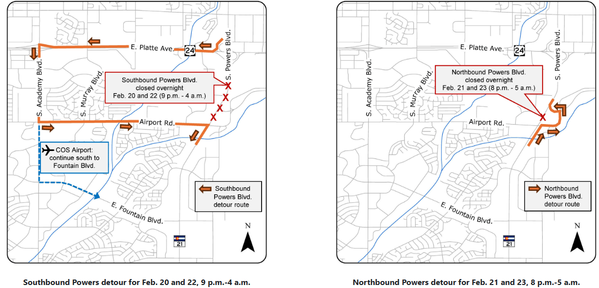 Heads up, night drivers! A key stretch of Powers will be closing. Expect overnight closures on Powers near Airport Road from Feb 20–23 from 9pm-4am for bridge construction. One direction will close each night, but detours are in place, and lanes will reopen by morning.