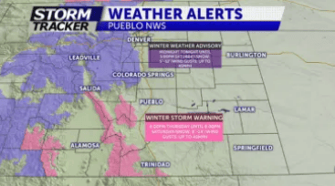 A Winter Storm Warning is in effect through Saturday for the higher elevations around Teller County, Pikes Peak, and northwestern Fremont County. Forecasts are calling for 8 to 14 inches of snow, which could make driving conditions hazardous, particularly during Friday's commute. Colorado Springs could see 2-4 inches.