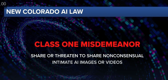 A new Colorado law is taking aim at the rising threat of AI-generated deepfake images, especially those that target children. The law makes it a crime to create, share, or threaten to share fake sexual content featuring someone’s likeness without their consent.