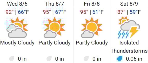 ⛅ COS Weather - Mostly cloudy, hot and hazy (from wildfire smoke)