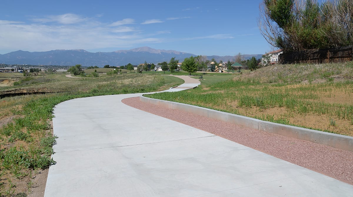 The trail is accessible for walkers, cyclists, strollers, and wheelchairs, and future plans call for extending it northeast to connect with Sand Creek Trail near Black Forest.