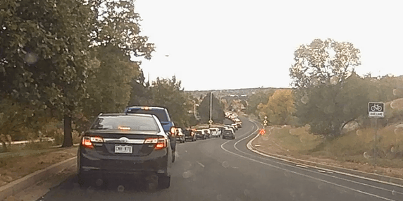 East Rockrimmon traffic at a standstill just east of Delmonico during paving. Courtesy: FOX21 News
