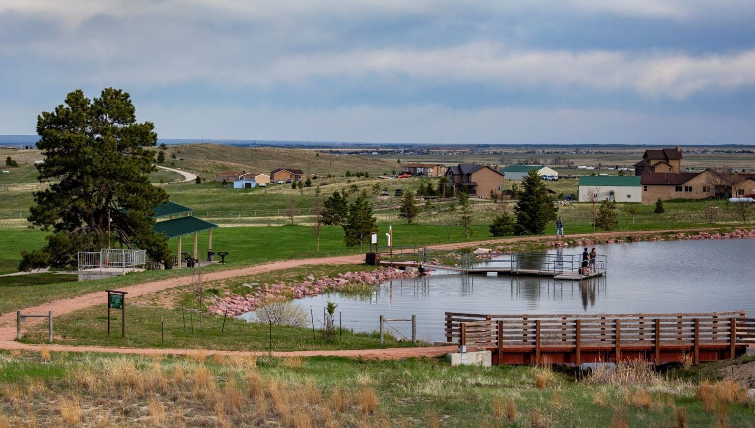 Located near the edge of Black Forest, Homestead Ranch Regional Park spans more than 450 acres of prairie landscape, rolling meadows, and wooded bluffs with sweeping views of Pikes Peak. The park features miles of trails for hiking, biking, and horseback riding, along with fishing opportunities at a spring-fed pond that attracts deer, foxes, coyotes, and dozens of bird species.