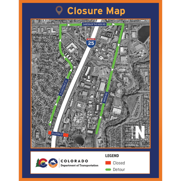 Full closure of southbound I-25 at Garden of the Gods Road with detours in place.🚗 Overnight lane closures also planned